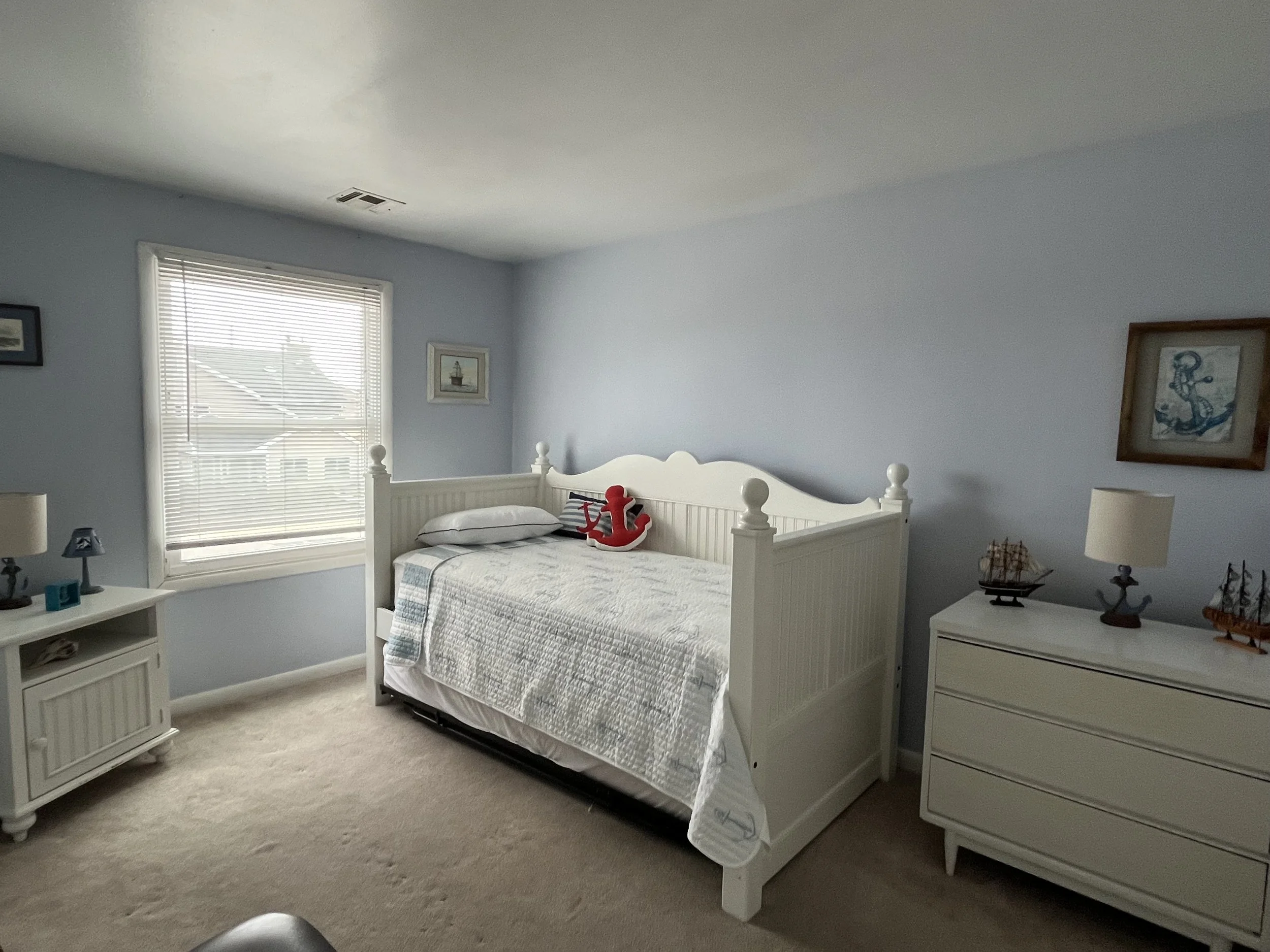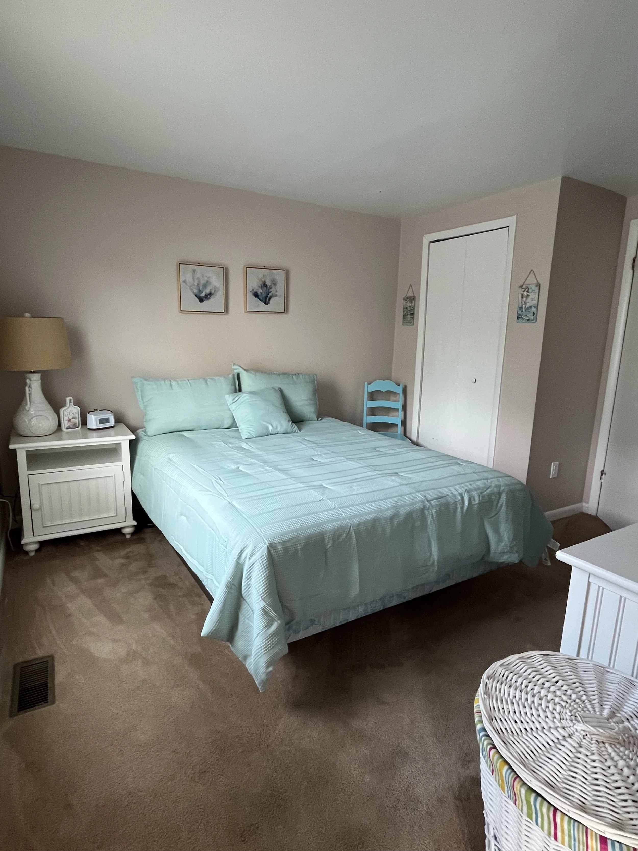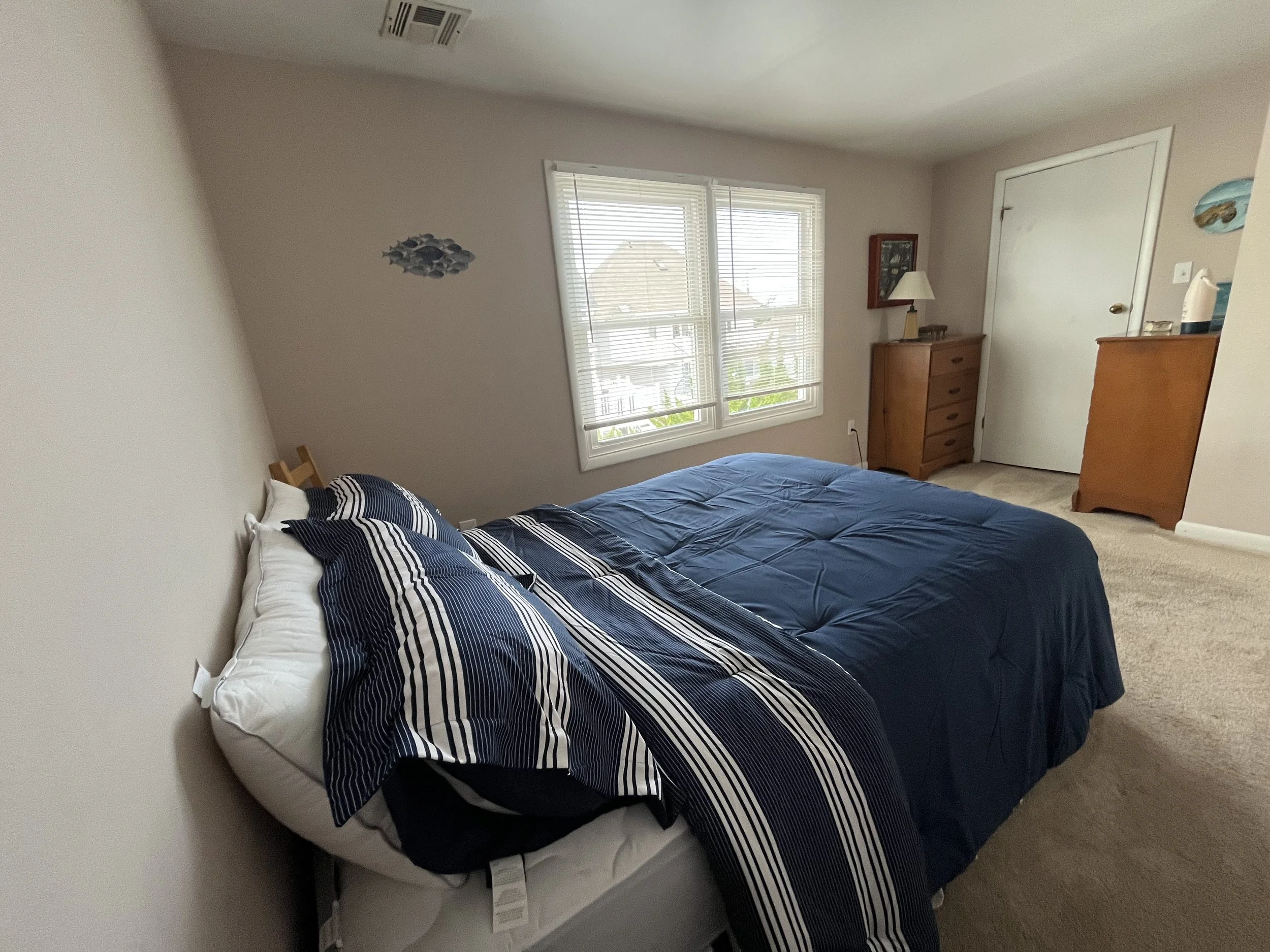 Summer rental end unit with 3 bedrooms and 2 full baths, front porch plus outside seating area, off-street parking, laundry in unit.